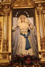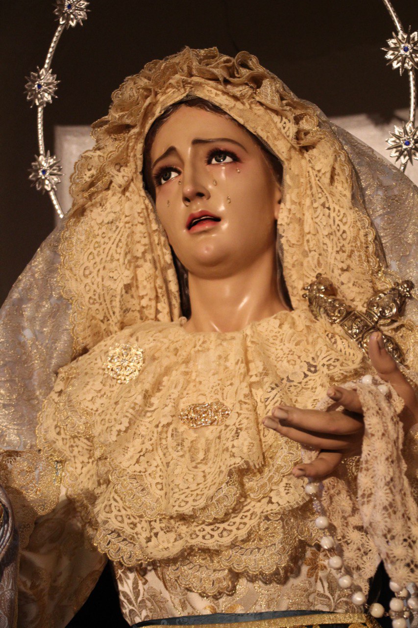 Nuestra Virgen del Primer Dolor, ataviada con motivo de la Inmaculada que celebramos hoy, un día importante para los cristianos.
